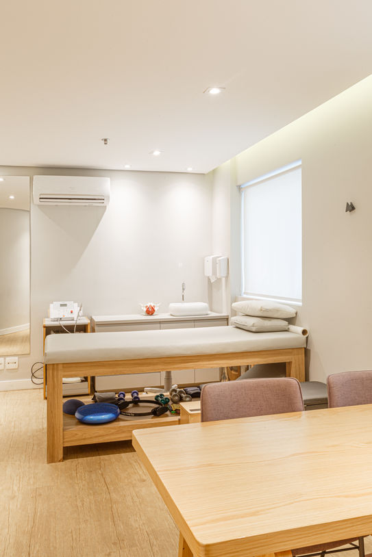Para uma clínica de fisioterapia sustentável voltada para mulheres, manter as paredes existentes é uma estratégia inteligente. Isso reduz o desperdício de materiais A madeira adiciona calor e naturalidade, criando um ambiente acolhedor e confortável.